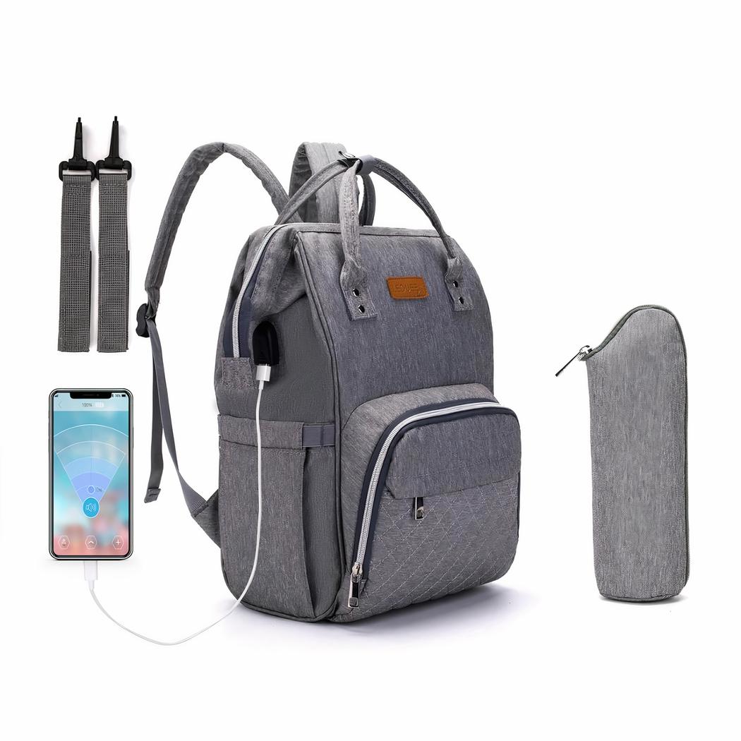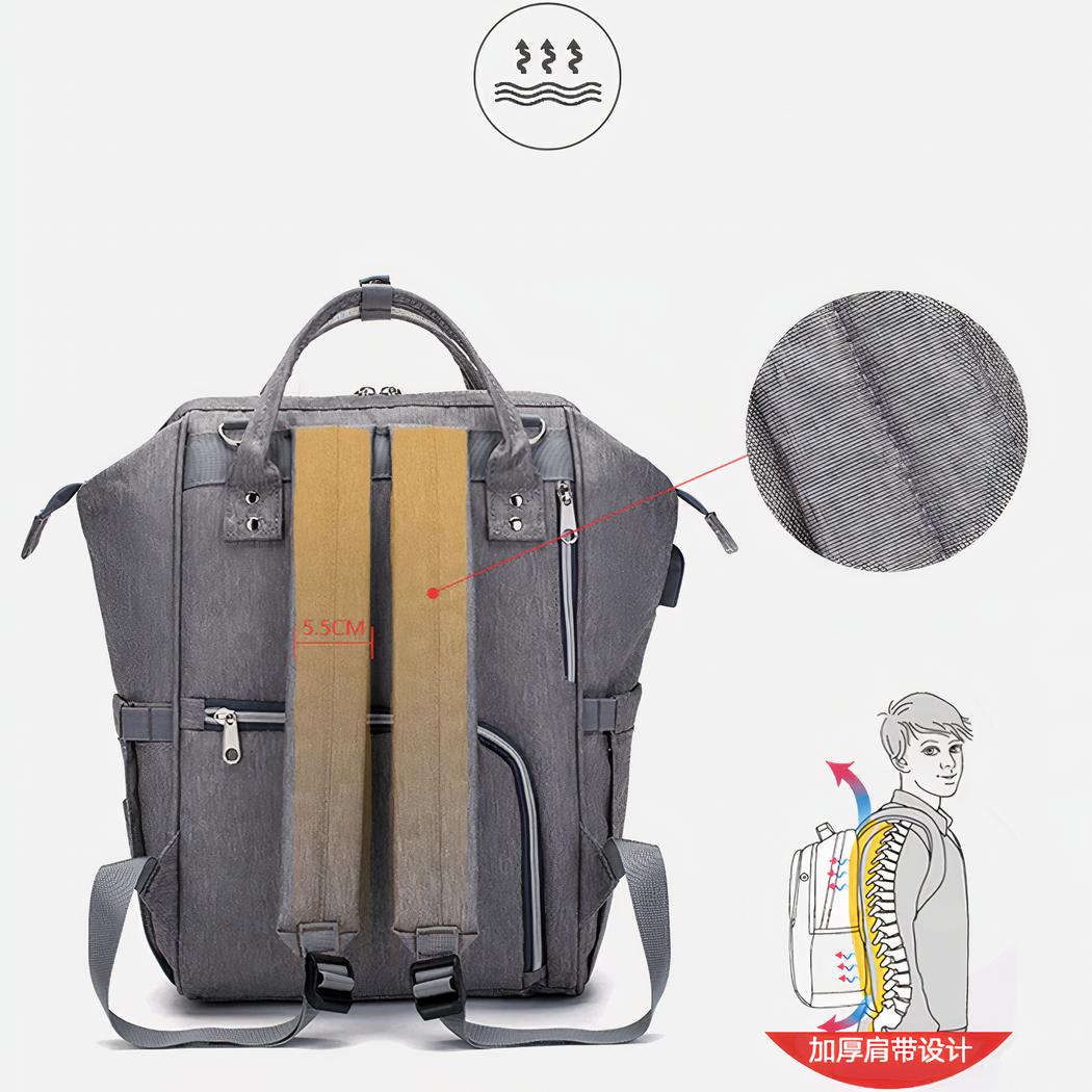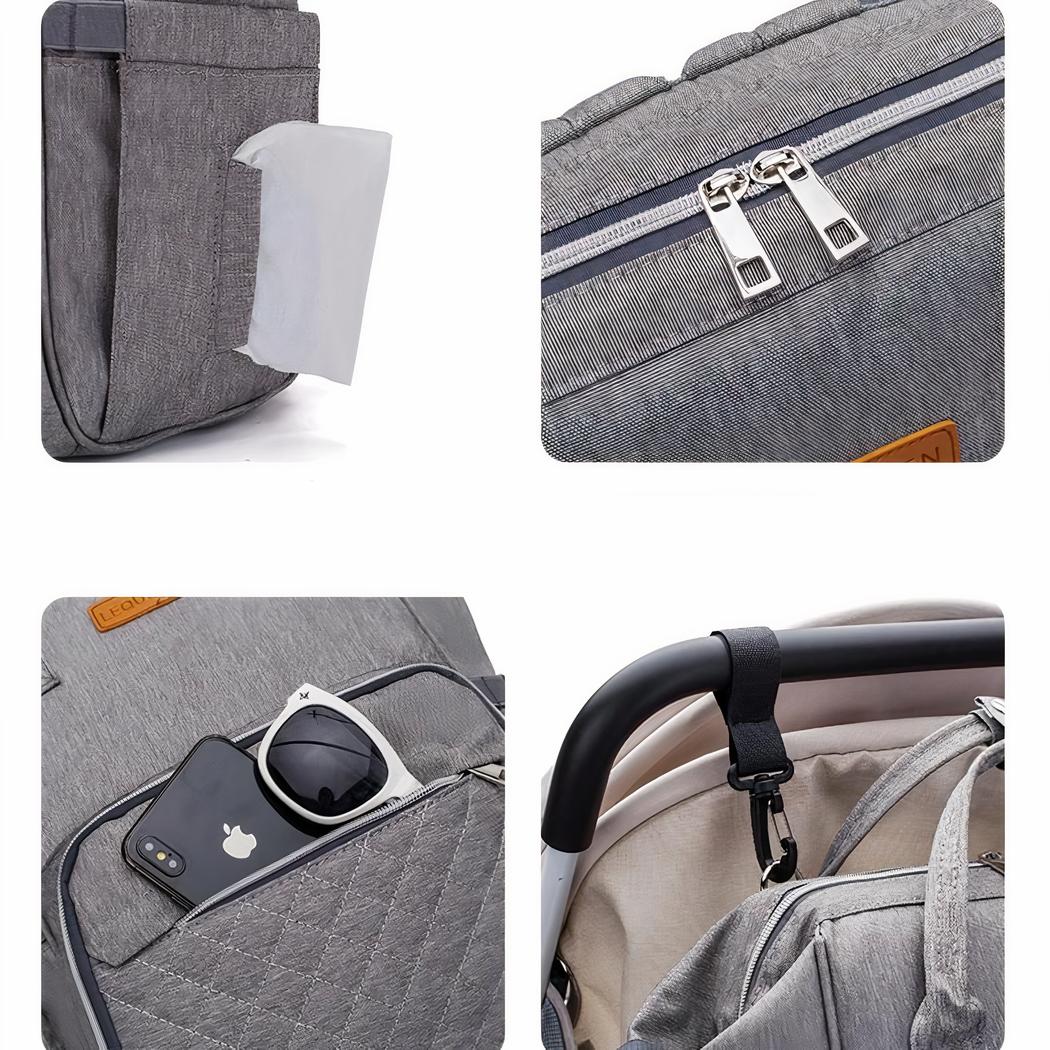 La borsa si aggancia anche al passeggino per essere più comoda per lei. La borsa per pannolini con porta USB e borsa isolante è un accessorio essenziale per i genitori. È pratica, funzionale ed esteticamente gradevole.