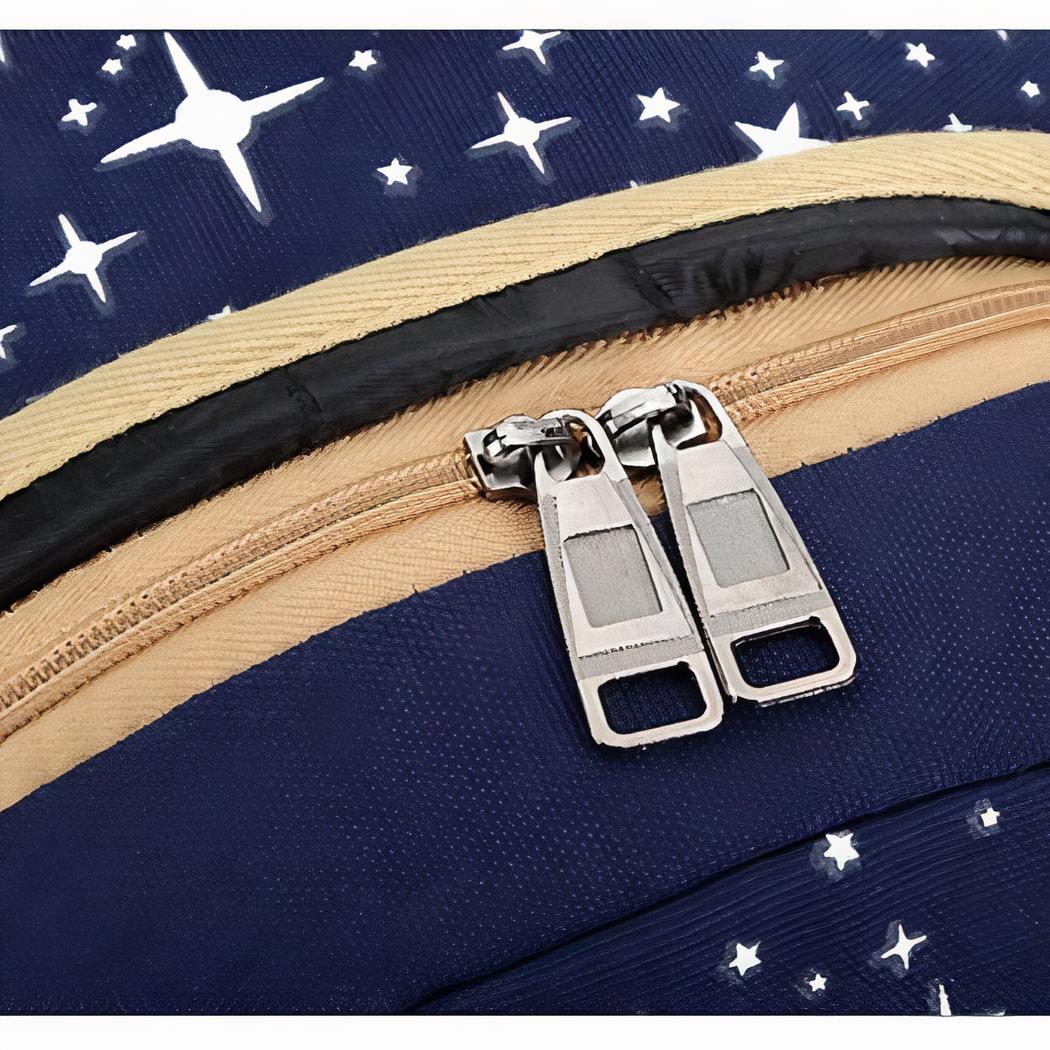 Questo splendido zaino è il compagno perfetto per ogni avventuriero in erba. È realizzato in un tessuto robusto e morbido, comodo e resistente. Il motivo a stelle gli conferisce un look unico e carino, perfetto per la moda dei bambini.