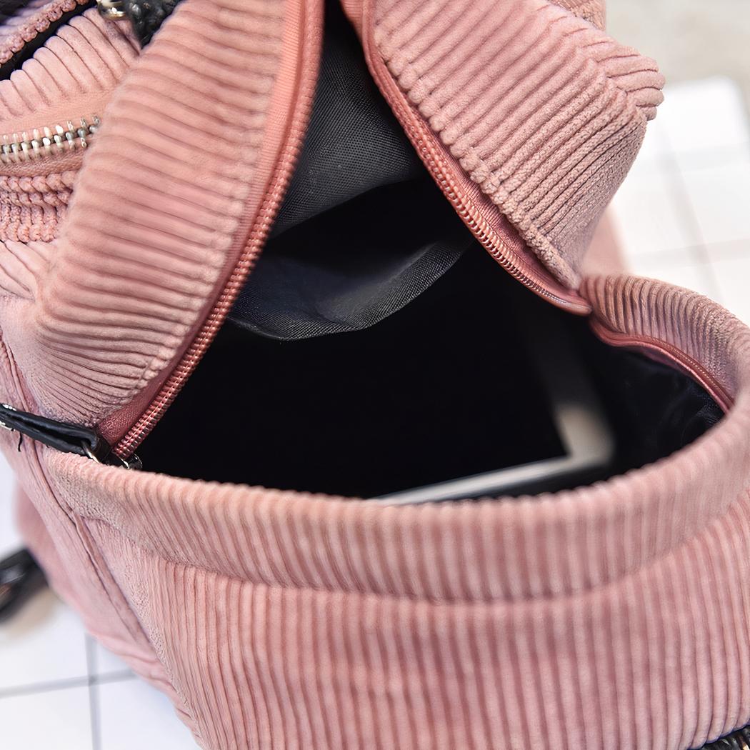 Questo zaino da donna di piccole dimensioni è realizzato in velluto a coste, con una texture morbida e un look elegante. Disponibile in cinque colori di tendenza, si adatta ad ogni guardaroba e occasione.