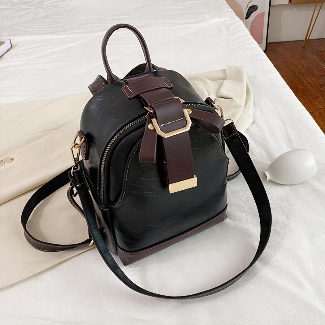 Questo zaino è un accessorio elegante e pratico per completare il suo look. Il suo design unico offre una sensazione di lusso e stile classico, pur rimanendo altamente funzionale. La pelle sintetica è morbida al tatto e resistente, il che la rende durevole e di alta qualità. Gli spallacci sono imbottiti e regolabili per un comfort ottimale, e la tasca frontale con zip consente di accedere facilmente ai piccoli oggetti.