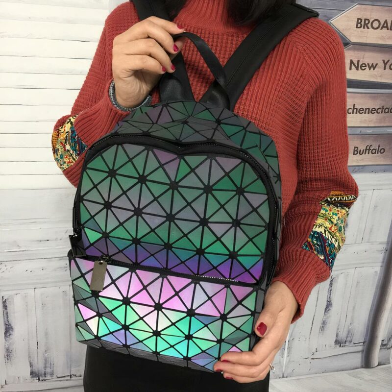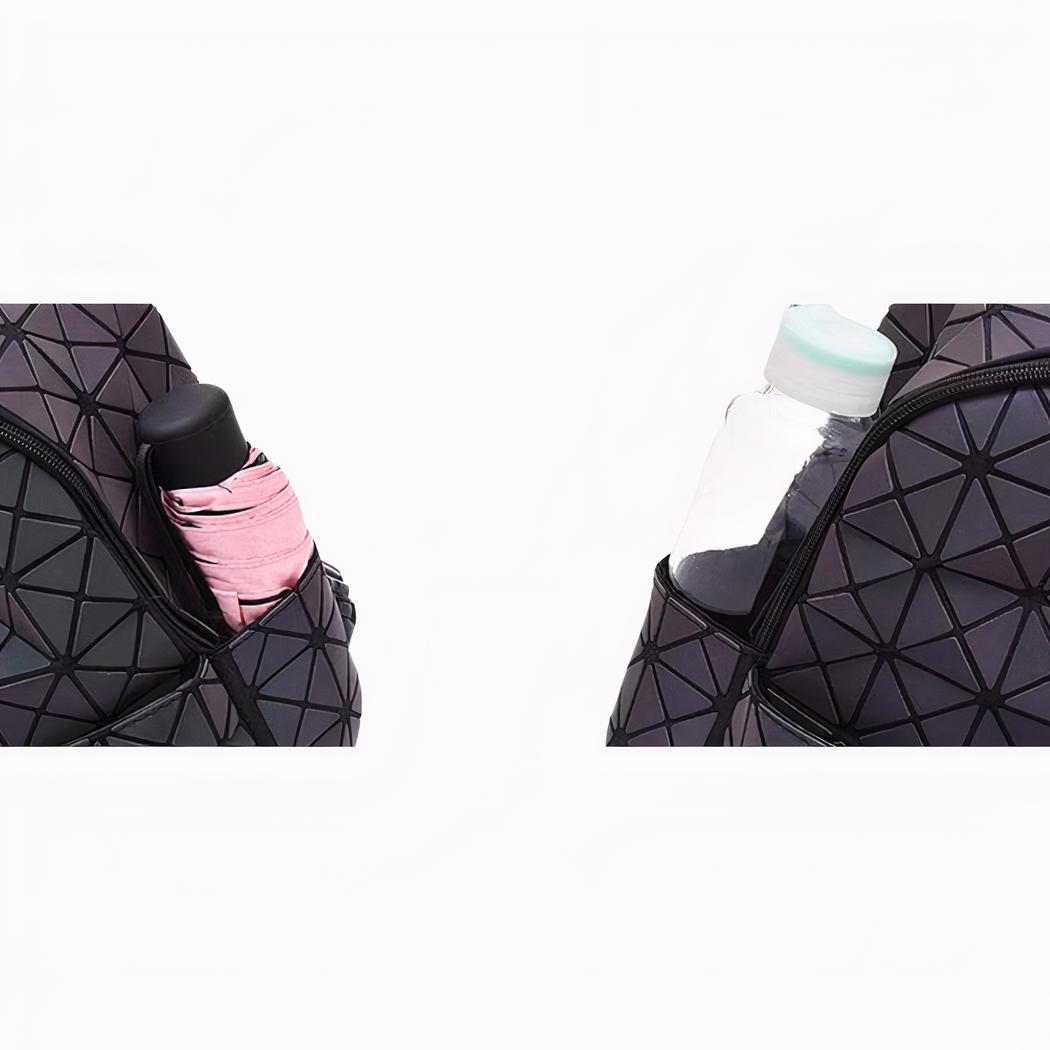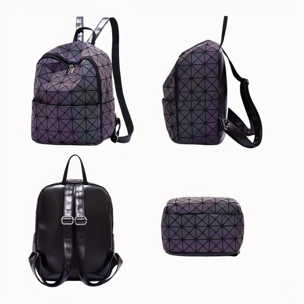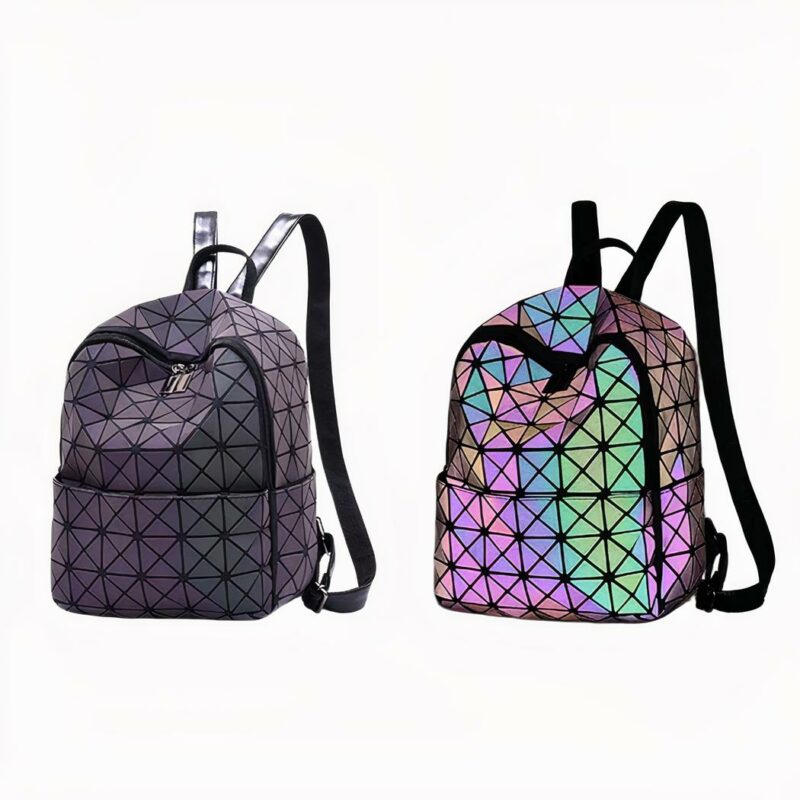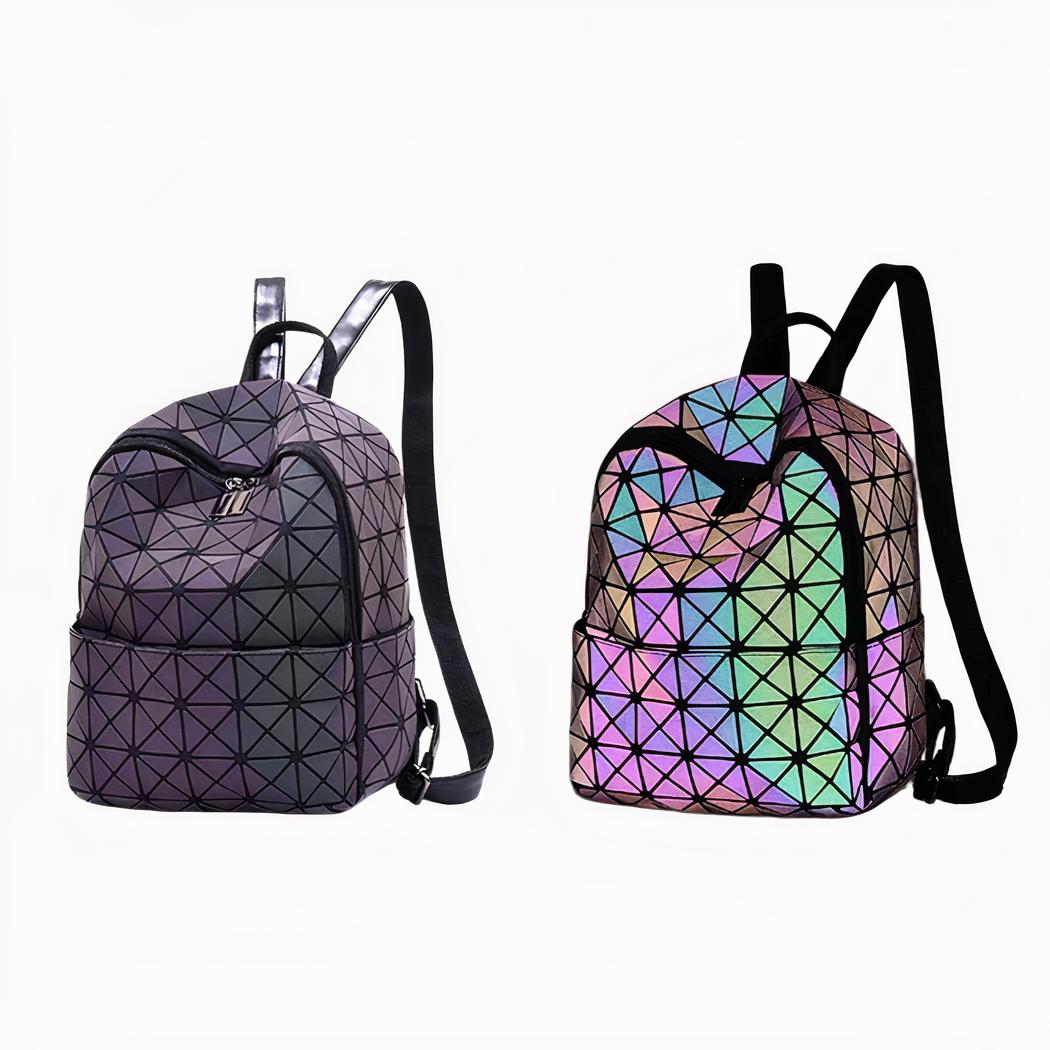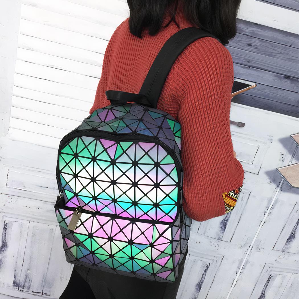 Questo zaino olografico geometrico è un accessorio di moda di tendenza. È realizzato con un materiale resistente e leggero che lo rende comodo da indossare. Il suo colore olografico geometrico aggiunge un tocco di originalità al suo look.