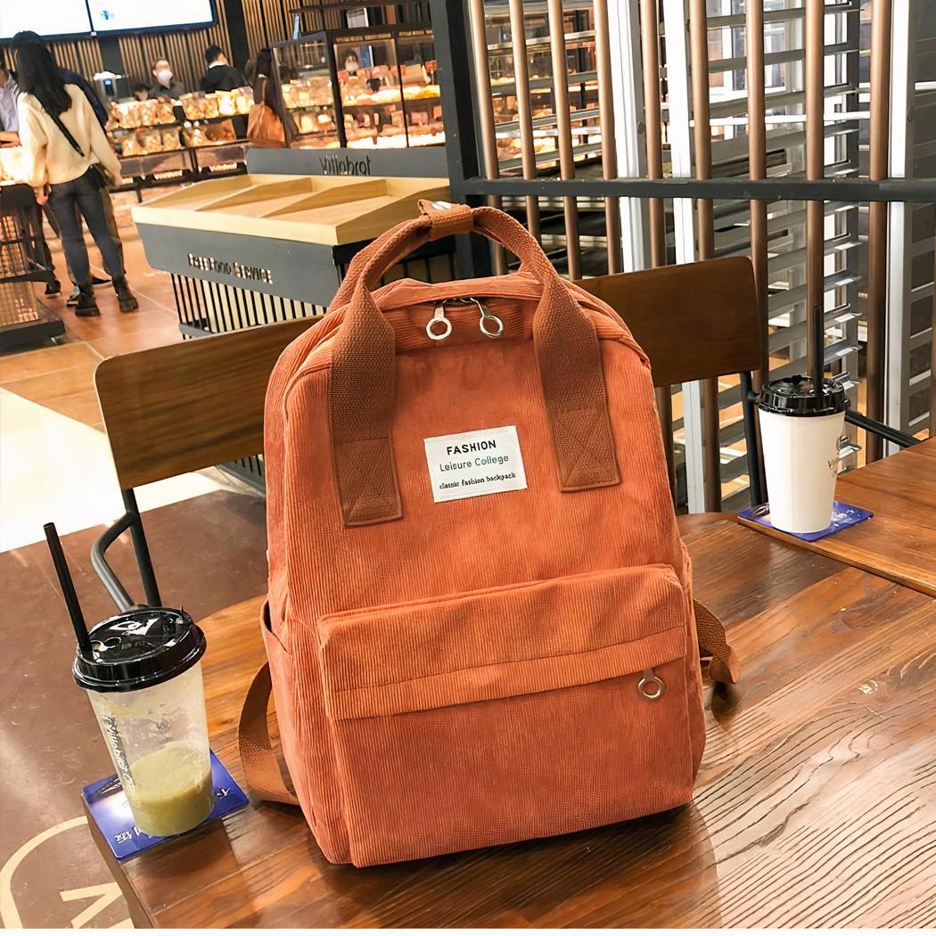 Questo zaino da donna in velluto a coste combina eleganza e praticità. Ultra leggero e dotato di spallacci spessi, non le causerà fatica o disagio. La borsa beneficia inoltre di un ampio scomparto e di un posto speciale per il laptop. L’aiuterà a trasportare gli oggetti essenziali di tutti i giorni.