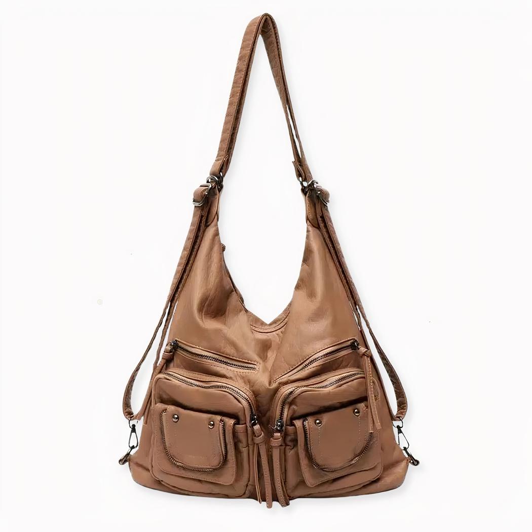 La tasca principale si chiude con una robusta cerniera e comprende ulteriori tasche interne per riporre i suoi effetti personali. La finta pelle di qualità è resistente agli elementi e all’usura quotidiana, rendendola perfetta per un uso intensivo.