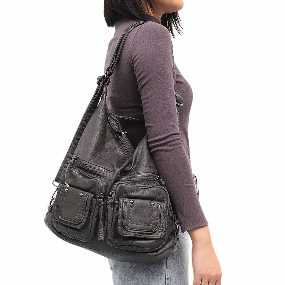 Questa borsa a tracolla convertibile è realizzata in ecopelle pregiata e ha un design elegante e raffinato che la rende pratica e alla moda. Dispone di numerosi scomparti e tasche per riporre i suoi effetti personali, e la tracolla la rende facile da trasportare.