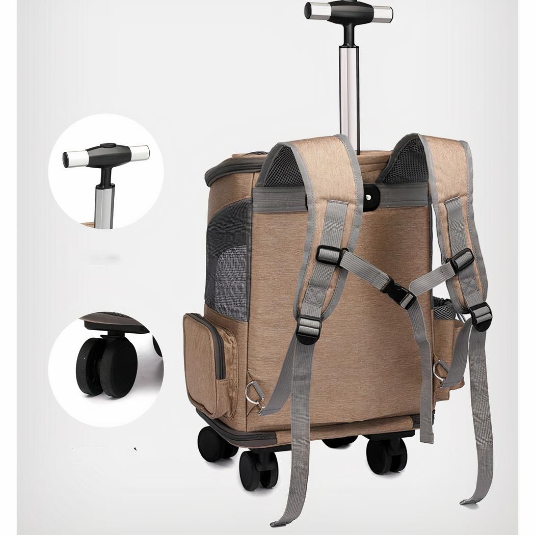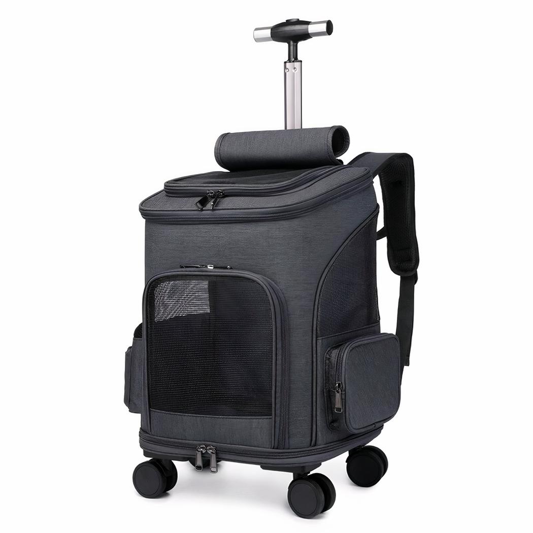 Questo zaino portatile per animali con trolley è il compagno ideale per tutti i suoi viaggi. È dotato di una maniglia in metallo per un facile trasporto. Il fondo è rinforzato per una maggiore stabilità e un sostegno più solido. La cinghia regolabile offre un sostegno ottimale e il trolley integrato consente di trasportare il suo animale domestico senza sforzo.