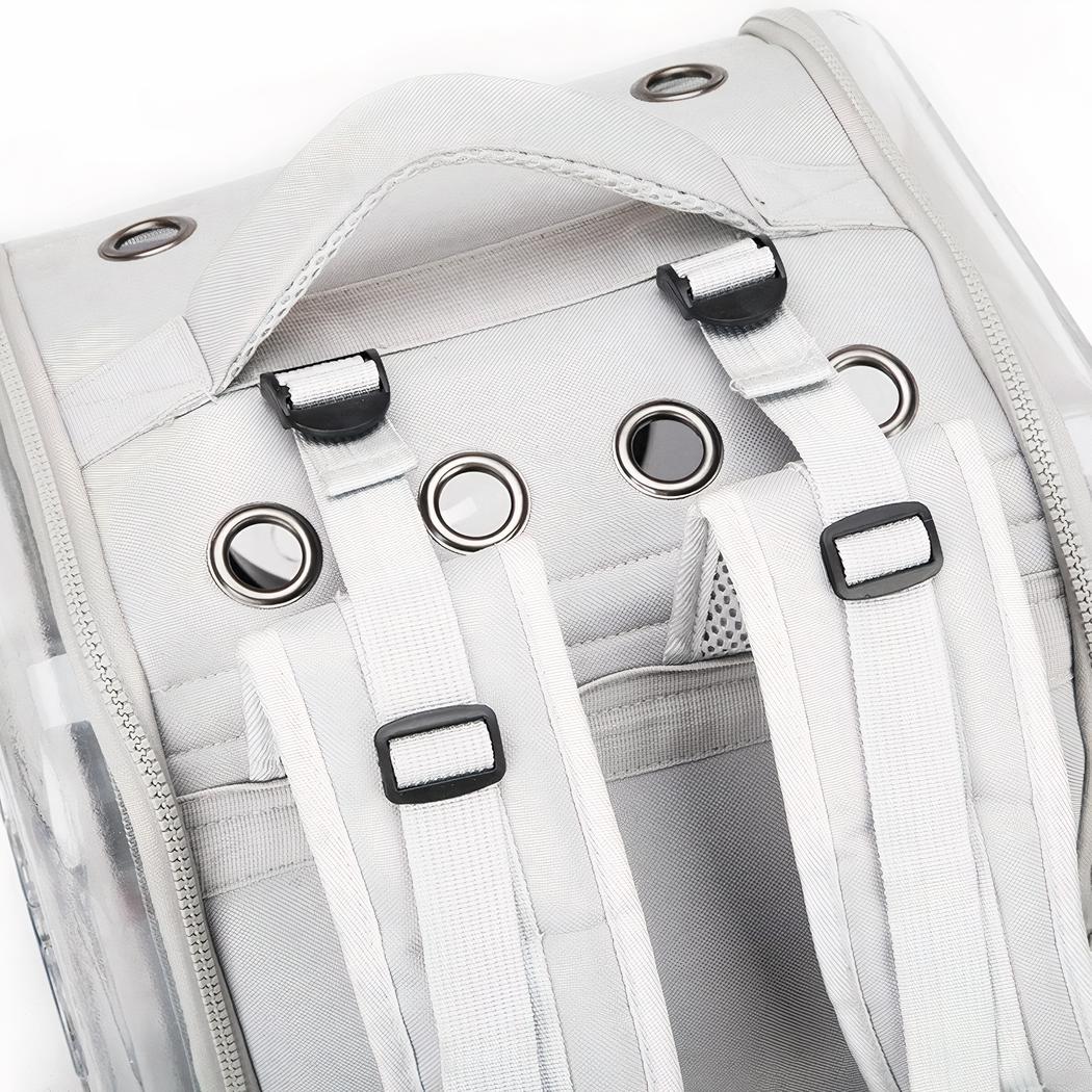 Gli spallacci regolabili e imbottiti offrono un comfort extra e il fondo della borsa è antiscivolo per evitare che il suo animale scivoli. Lo zaino è dotato di una maniglia per facilitare il trasporto e di una cinghia per fissarlo alla cintura. Il design trasparente permette al suo animale di vedere fuori e le consente di tenerlo d’occhio. Questo zaino è ideale per viaggi, passeggiate e uscite in città.