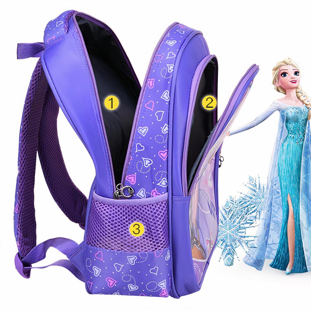 Lo zaino è abbastanza grande da contenere tutti gli elementi essenziali necessari per la scuola o il viaggio. Sua figlia potrà riporre i suoi quaderni in uno dei due scomparti chiusi. Sul lato, c’è uno spazio per la sua bottiglia d’acqua.