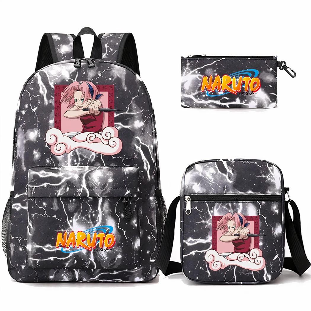 Questo zaino con la famosa serie anime è l’accessorio essenziale per tutti i giovani fan di Naruto. Questo set comprende uno zaino, una borsa a tracolla e un portamatite. Tutti con un design a forma di fulmine.