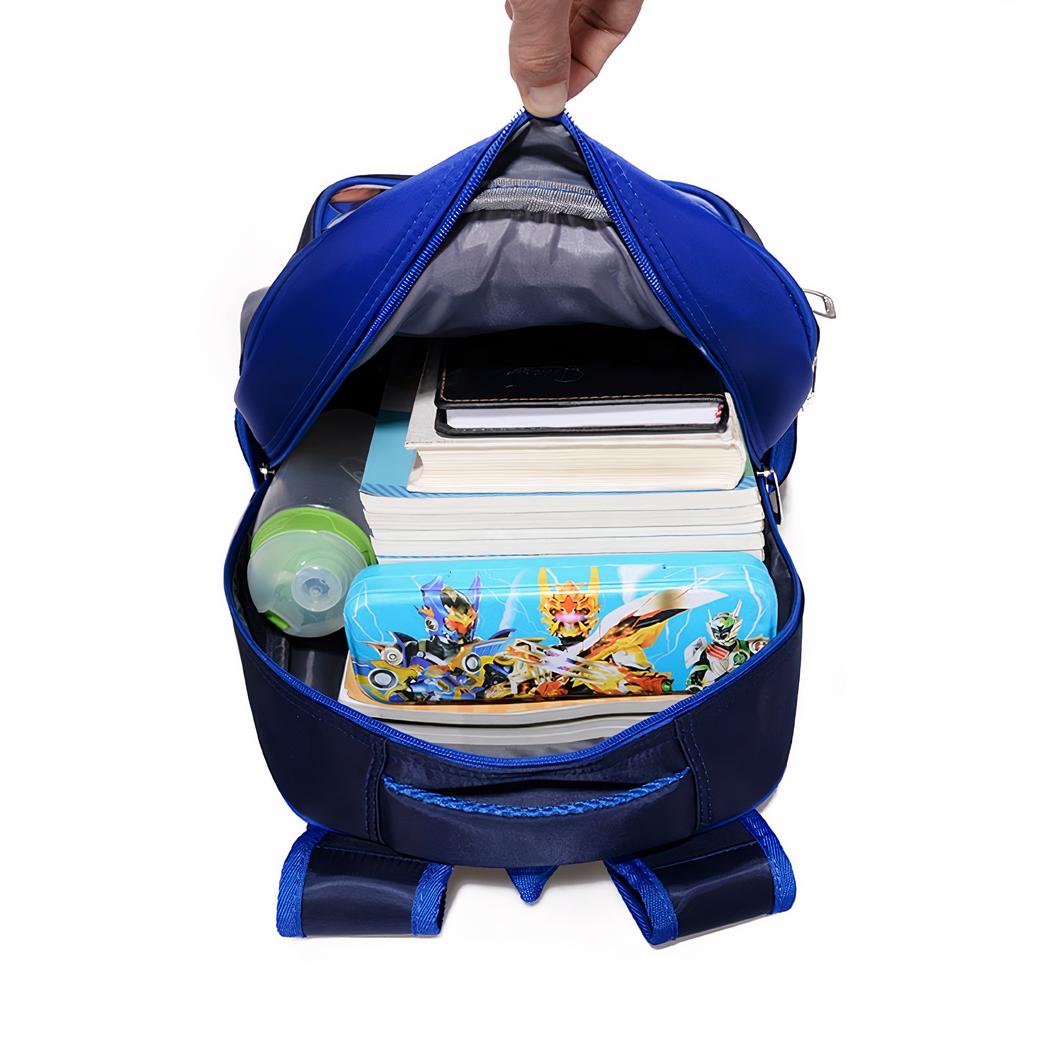 Questo è lo zaino ideale per gli studenti che portano molto materiale scolastico. È realizzato in poliestere resistente e offre un ampio spazio di archiviazione. Lo zaino è imbottito sul retro per offrire un maggiore comfort e prevenire il mal di schiena fin dalla più tenera età.