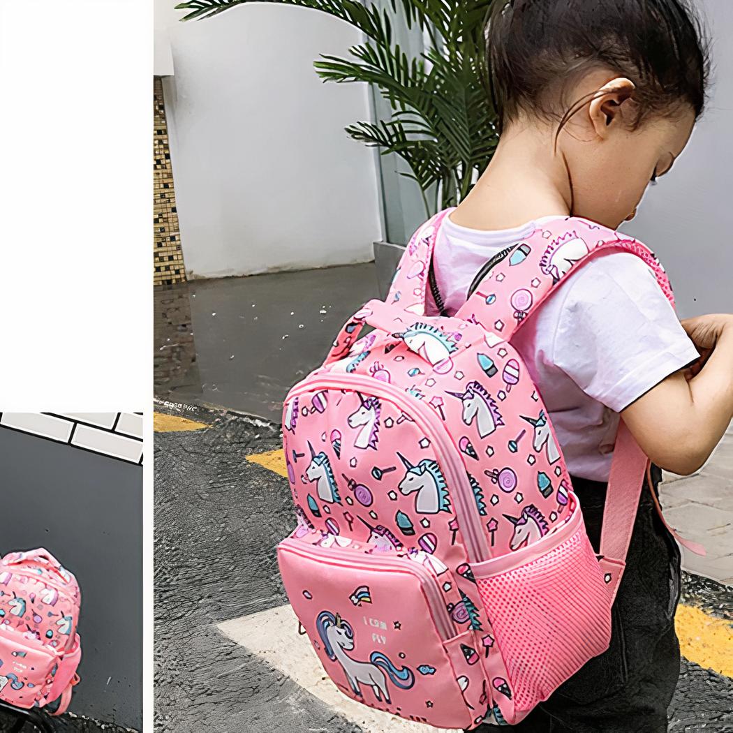 Questo zaino per bambine dai colori vivaci con un motivo a unicorno è un prodotto ideale per le bambine. È dotato di un’ampia tasca principale e di due tasche laterali con cerniera per riporre tutti i piccoli tesori.